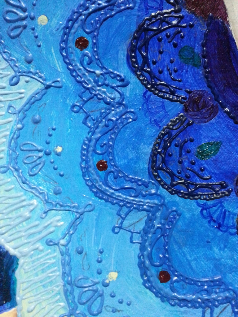 画像でも針から絵具があふれてますが、常にだだ漏れです。手を盛大に汚しながら制作しています。